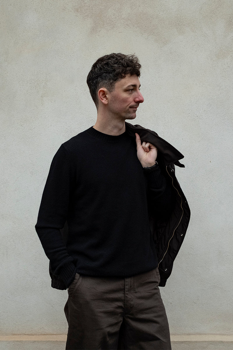Modellen er ca. 188 cm høj og bruger størrelse L.