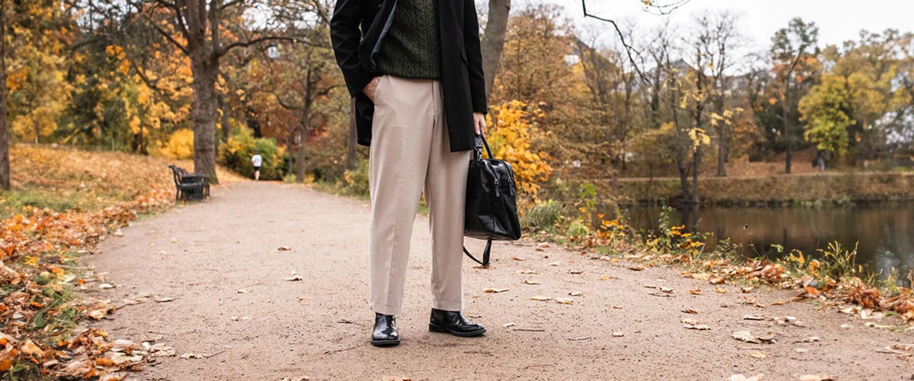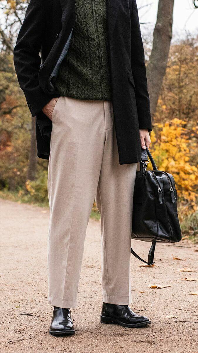 Flotte, sandfarvede habitbukser, der er til at betale.